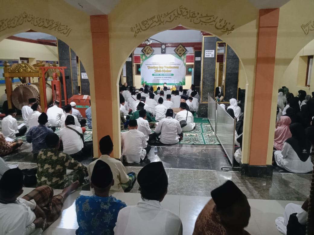 Majelis Wakil Cabang Nahdlatul Ulama (MWCNU) Kecamatan Berbek menggelar kegiatan Ijazahan dan Pembacaan Hizib Nashor di Masjid Jami’ Al-Mubarok, Kecamatan Berbek, pada Selasa malam (4/11/2025). Kegiatan ini mengusung tema “Santri Menjaga Kiai dan Pesantren, Mengawal Indonesia Merdeka Menuju Peradaban Dunia.”